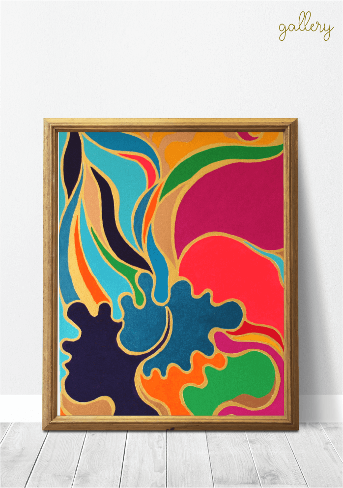 Pintura colorida abstracta con tonalidades azules de alto contraste en su mayoría, me inspire con las orquídeas.
