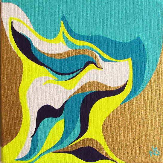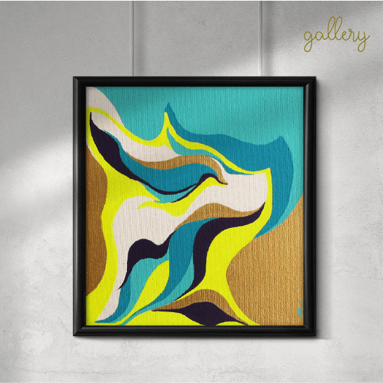 Pintura abstracta figurativa colorida, pintada con acrilícos, con tonalidades en su mayoria azules