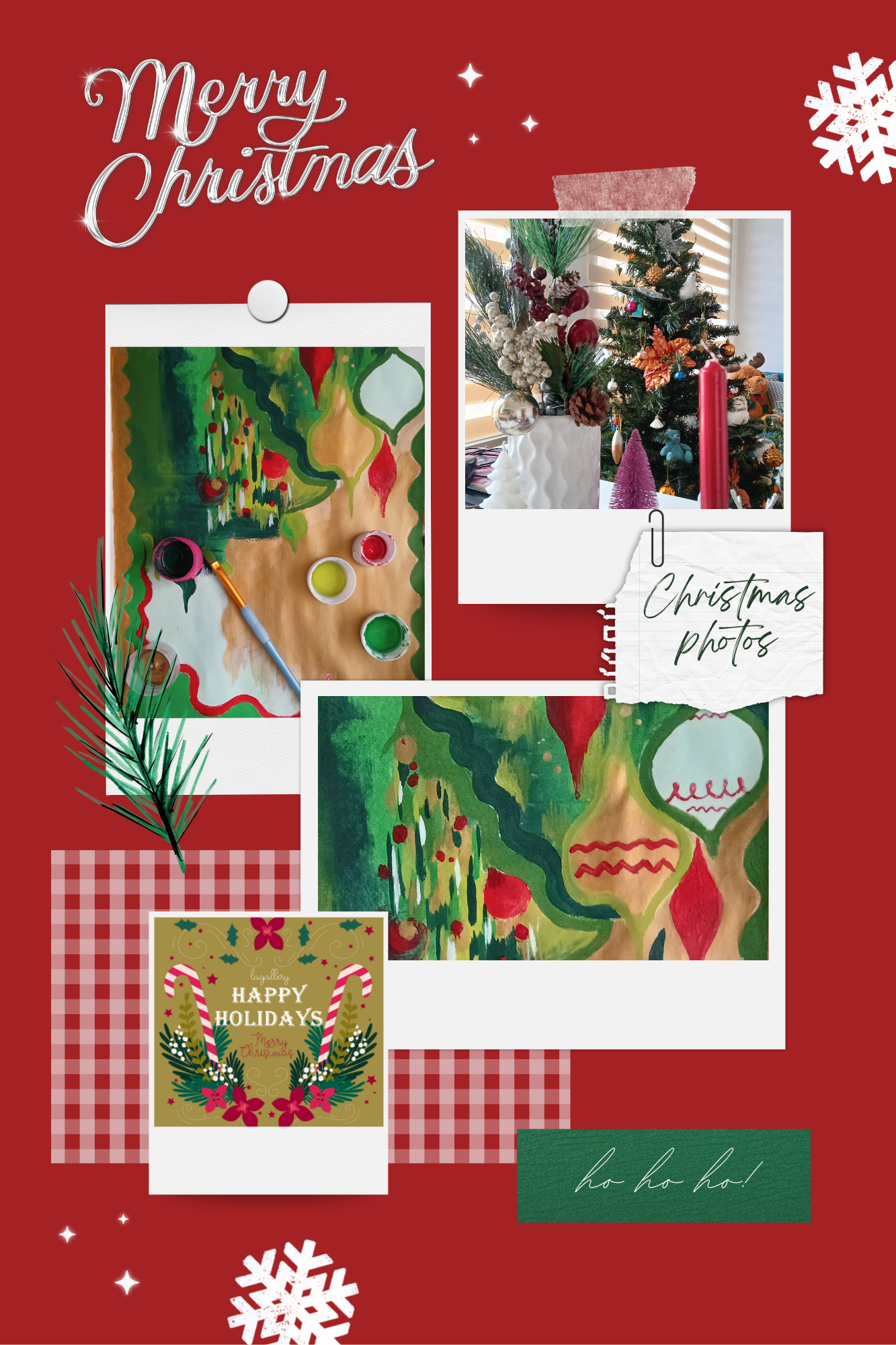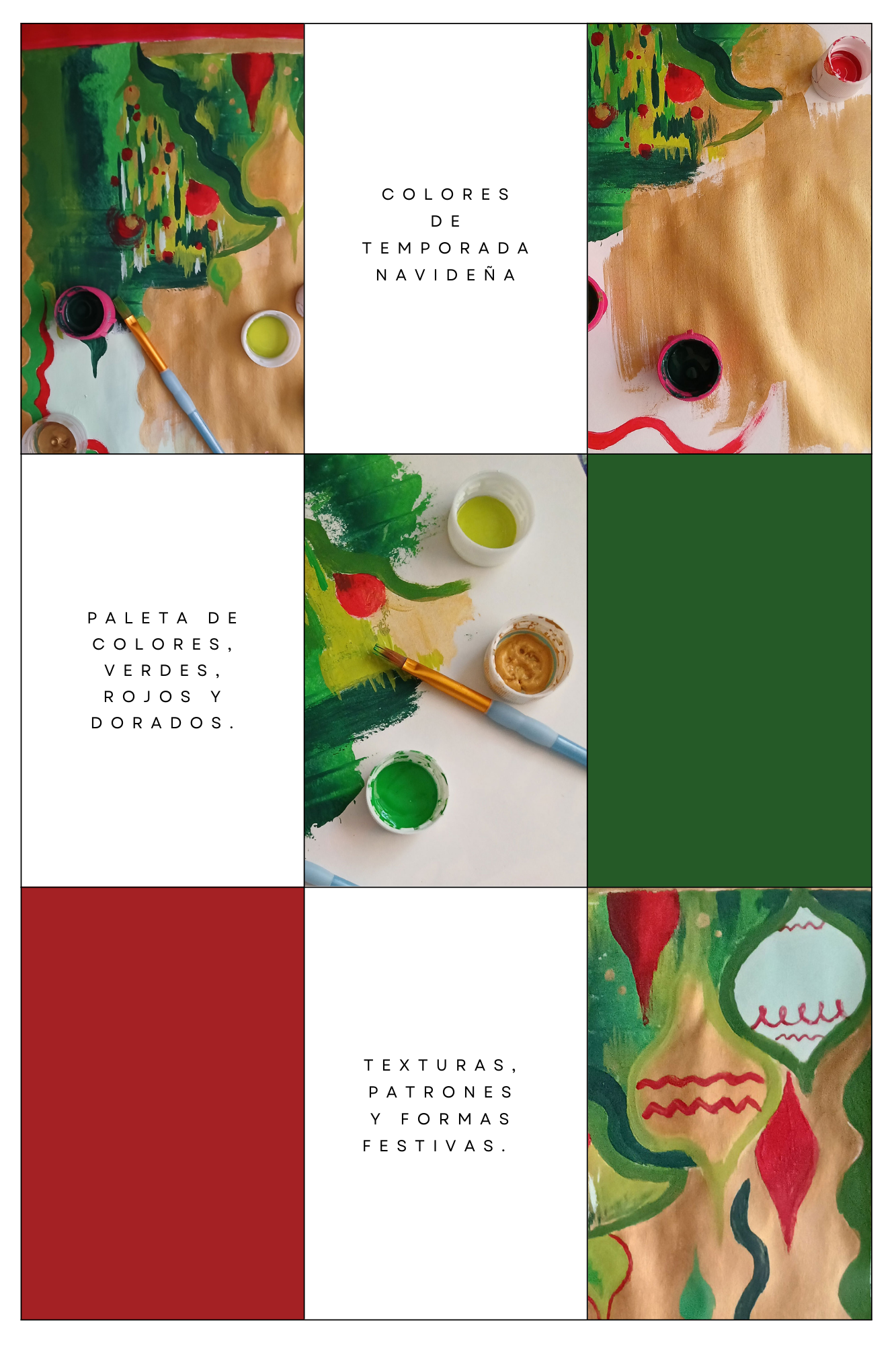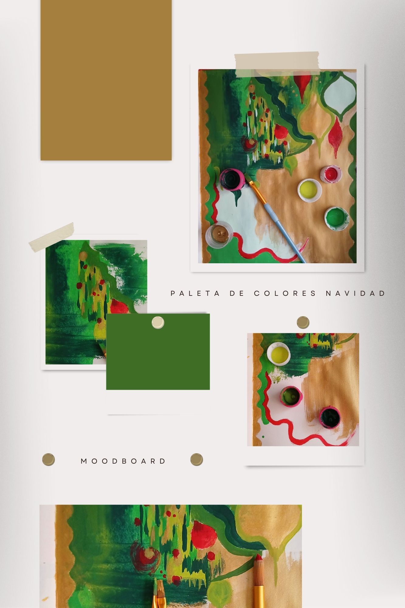 Moodboard de inspiración creado con las diferentes fotos, diseños y bocetos artísticos que he realizado en esta navidad, la inspiración es la época y sus colores en especial la base que son el rojo y el verde.