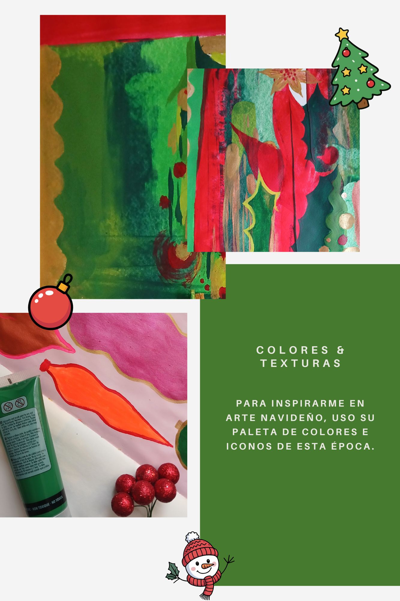 Llega la temporada de fin de año, y siempre llena de mucho color, luces, texturas, iconos y demás, es una época que inspira mucho para crear, para los diseñadores y artistas es la oportunidad de jugar con los estilos y colores que la navidad trae y asi hacer diferentes obras y regalos sorprendentes.